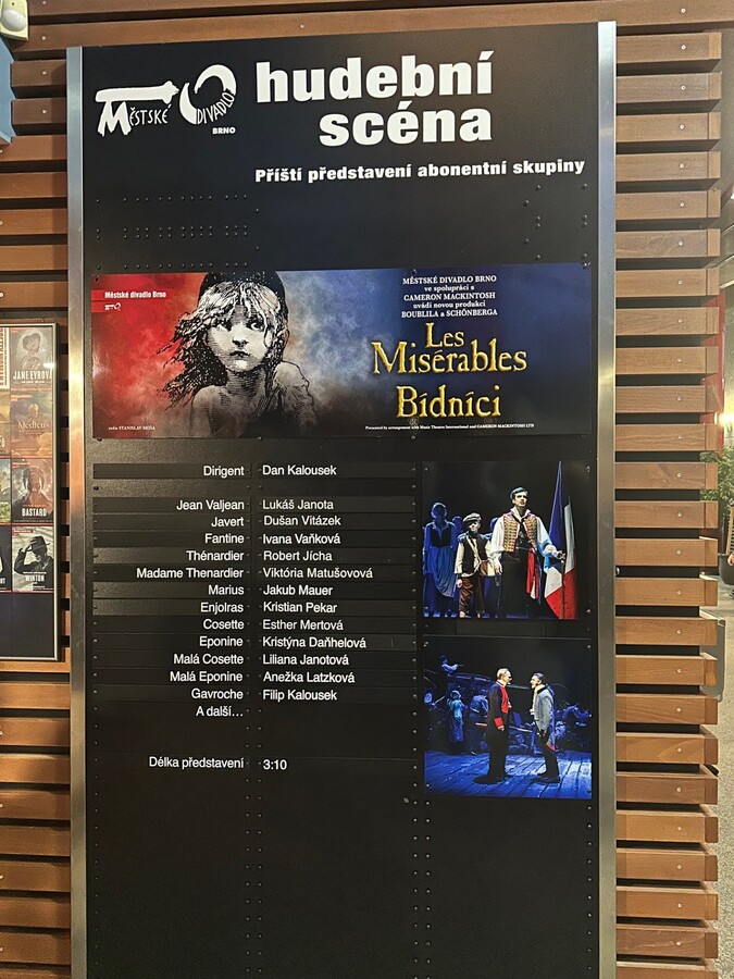 V úterý 17. února jsme v tomto školním roce podruhé zavítali do Městského divadla v Brně, abychom zhlédli nově nastudované muzikálové představení Bídníci.