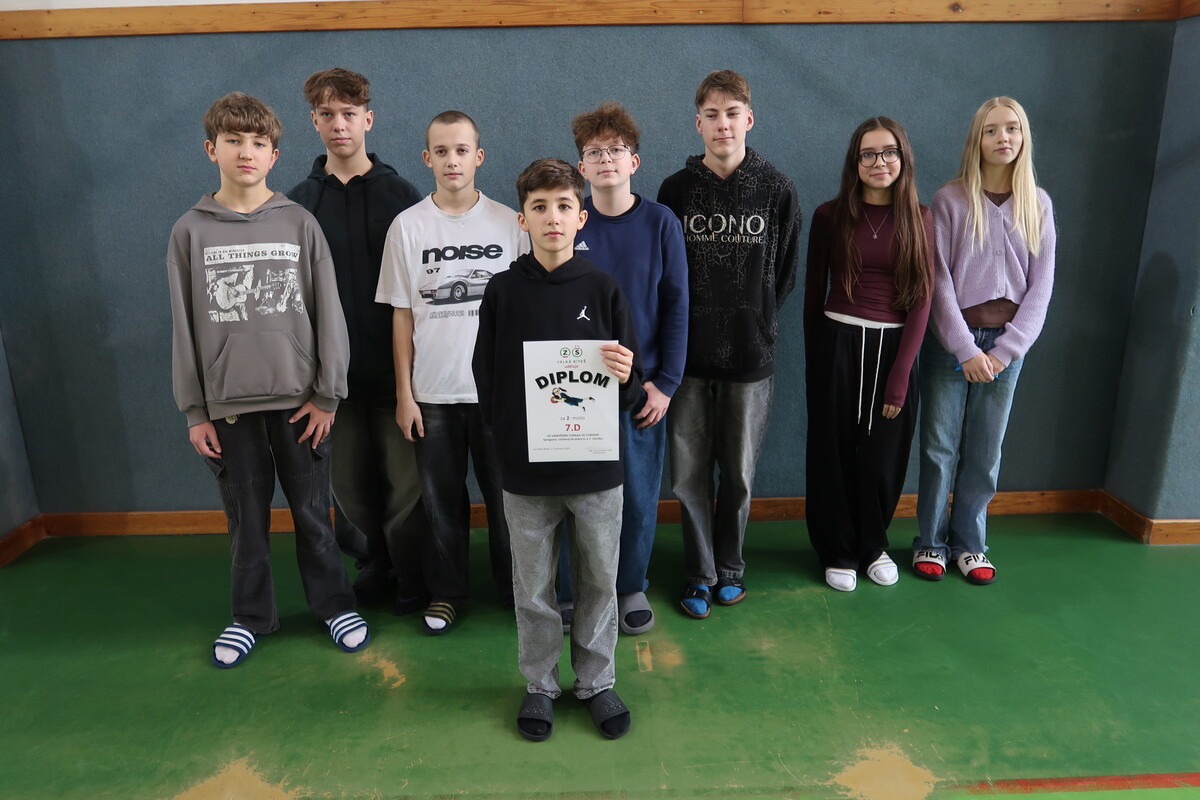 Šesté a sedmé ročníky změřily síly v turnaji ve vybíjené. Po vyrovnaných zápasech si první místo vybojovala třída 7.B, druhé skončila 7.D a třetí místo obsadila favorizovaná 7.A.