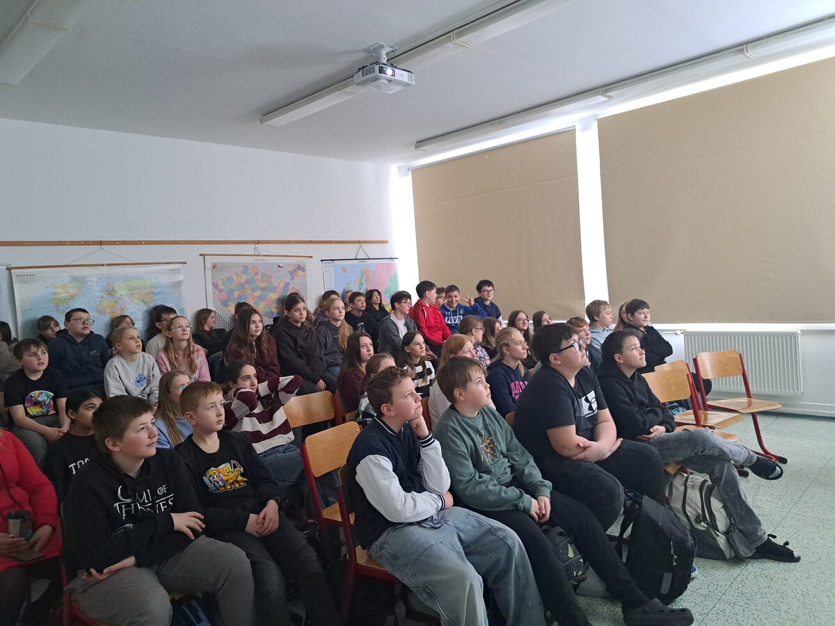 Dne 26. února 2026 se na naší škole uskutečnila beseda o cestování, jejímž hostem byl pan Kocůrek. Žáci jednotlivých ročníků se pomyslně vydali do různých koutů světa.