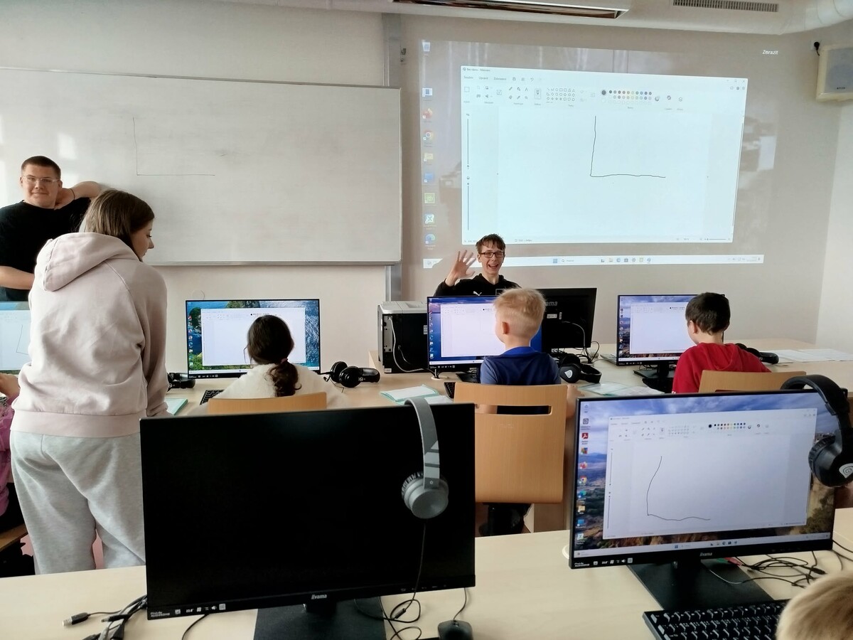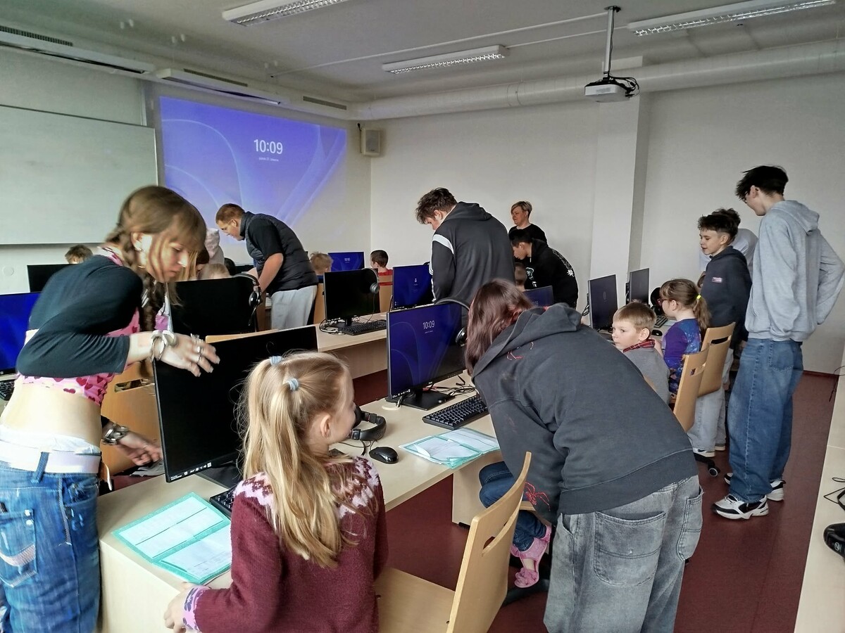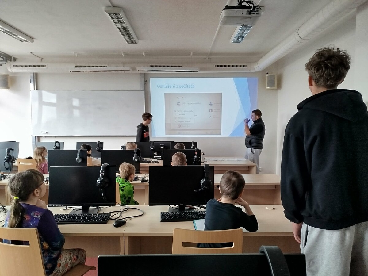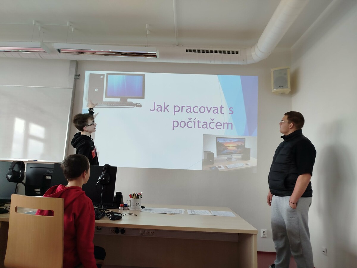 Cílem této aktivity bylo nejen naučit prvňáčky základní dovednosti, jako je zapnutí počítače, práce s myší nebo orientace na obrazovce, ale také podpořit spolupráci mezi žáky různých ročníků. Deváťáci si připravili jednoduché a srozumitelné úkoly, díky kterým si děti mohly vše prakticky vyzkoušet. Nechyběly ani zábavné hry zaměřené na procvičení klikání, kreslení nebo psaní na klávesnici.