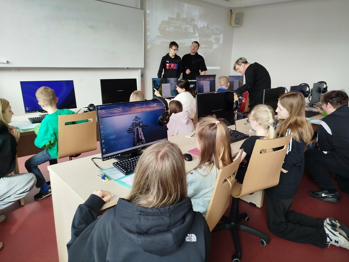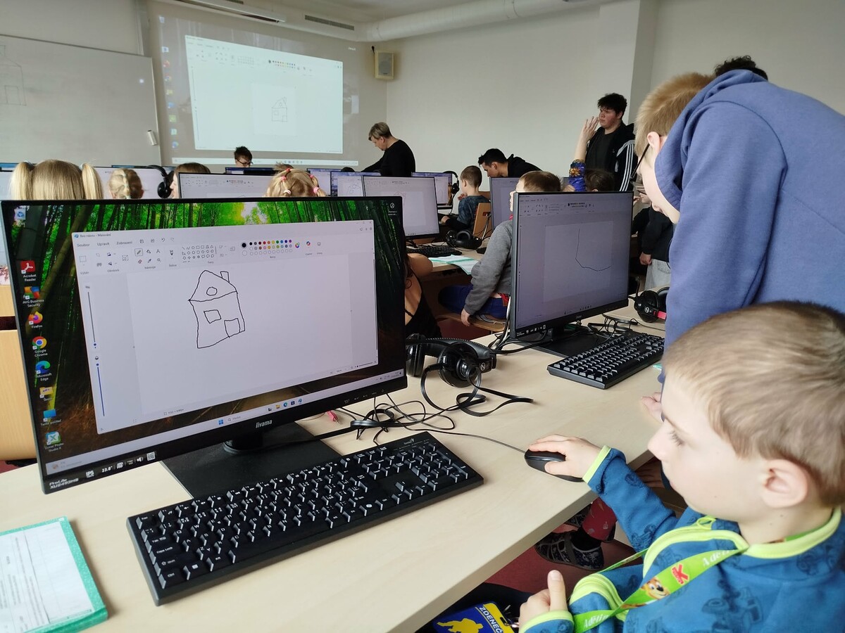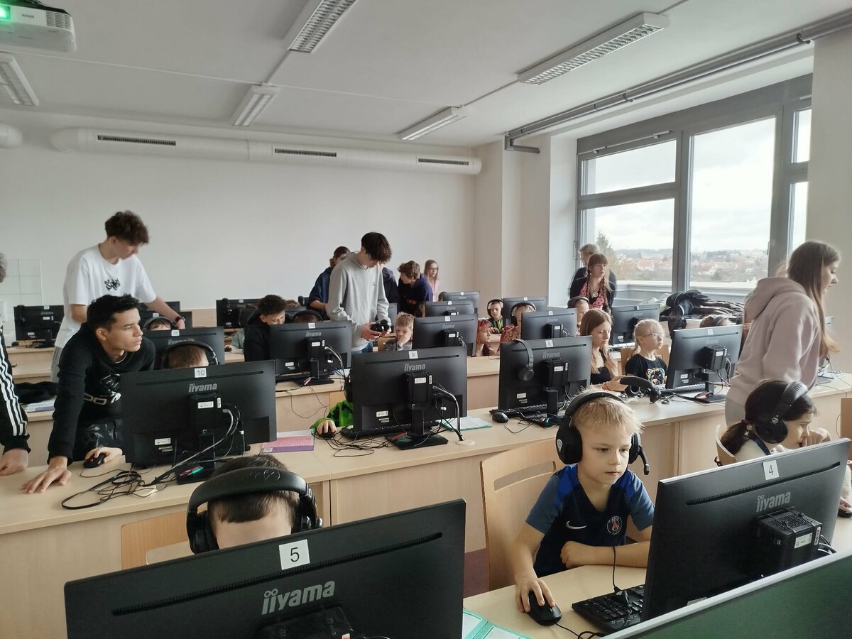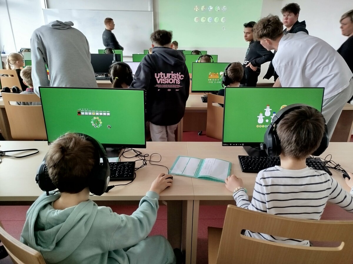 Cílem této aktivity bylo nejen naučit prvňáčky základní dovednosti, jako je zapnutí počítače, práce s myší nebo orientace na obrazovce, ale také podpořit spolupráci mezi žáky různých ročníků. Deváťáci si připravili jednoduché a srozumitelné úkoly, díky kterým si děti mohly vše prakticky vyzkoušet. Nechyběly ani zábavné hry zaměřené na procvičení klikání, kreslení nebo psaní na klávesnici.