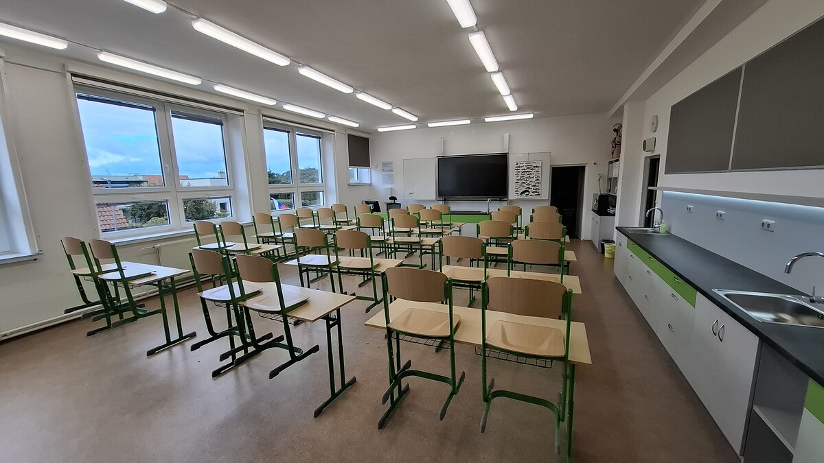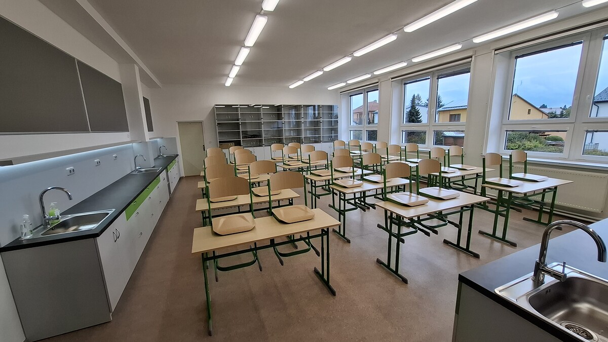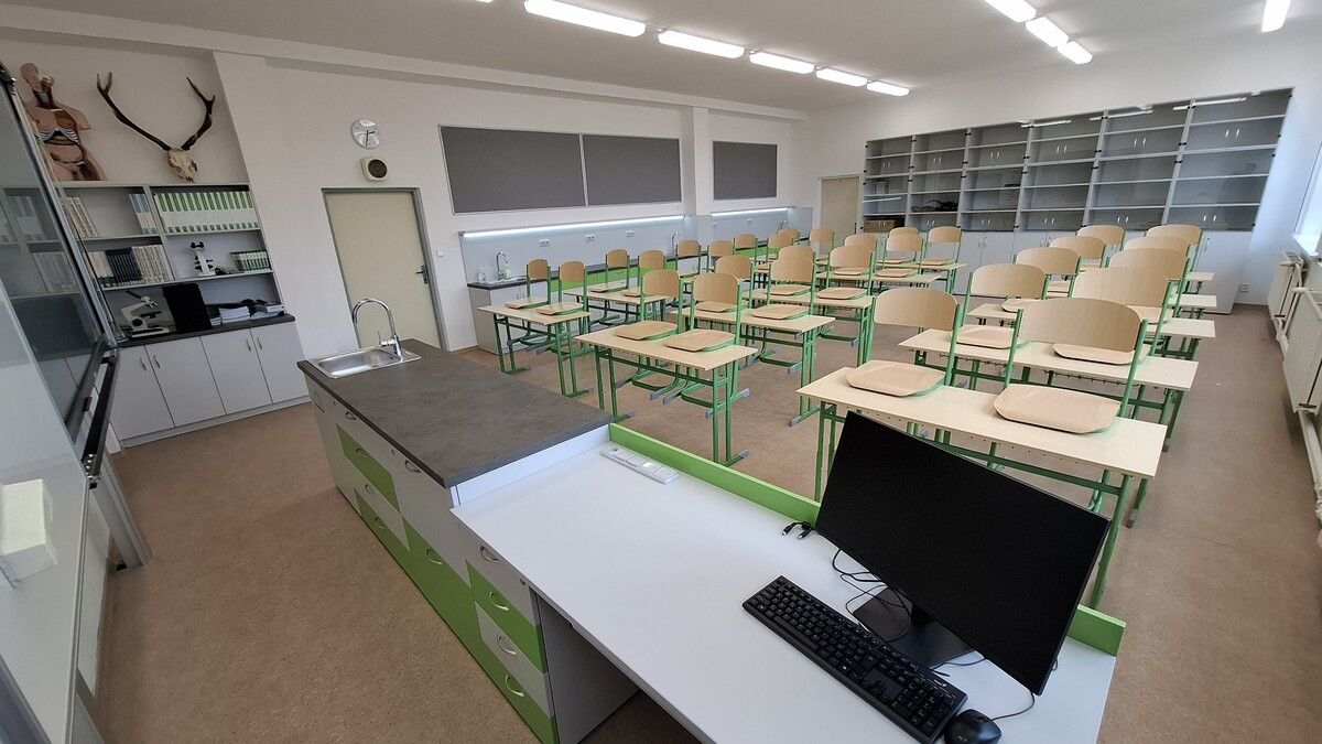 V září 2025 byla realizována modernizace přírodovědné učebny na 2. stupni naší školy. Výsledkem je nově vybavený prostor pro výuku přírodopisu, který odpovídá současnému vývoji a moderním výukovým metodám. Učebna přírodopisu nyní umožňuje aktivnější zapojení žáků do výuky, podporuje jejich motivaci i samotný zájem o výuku. Tento projekt je spolufinancován Evropskou unií a dotace je čerpána z programu IROP.